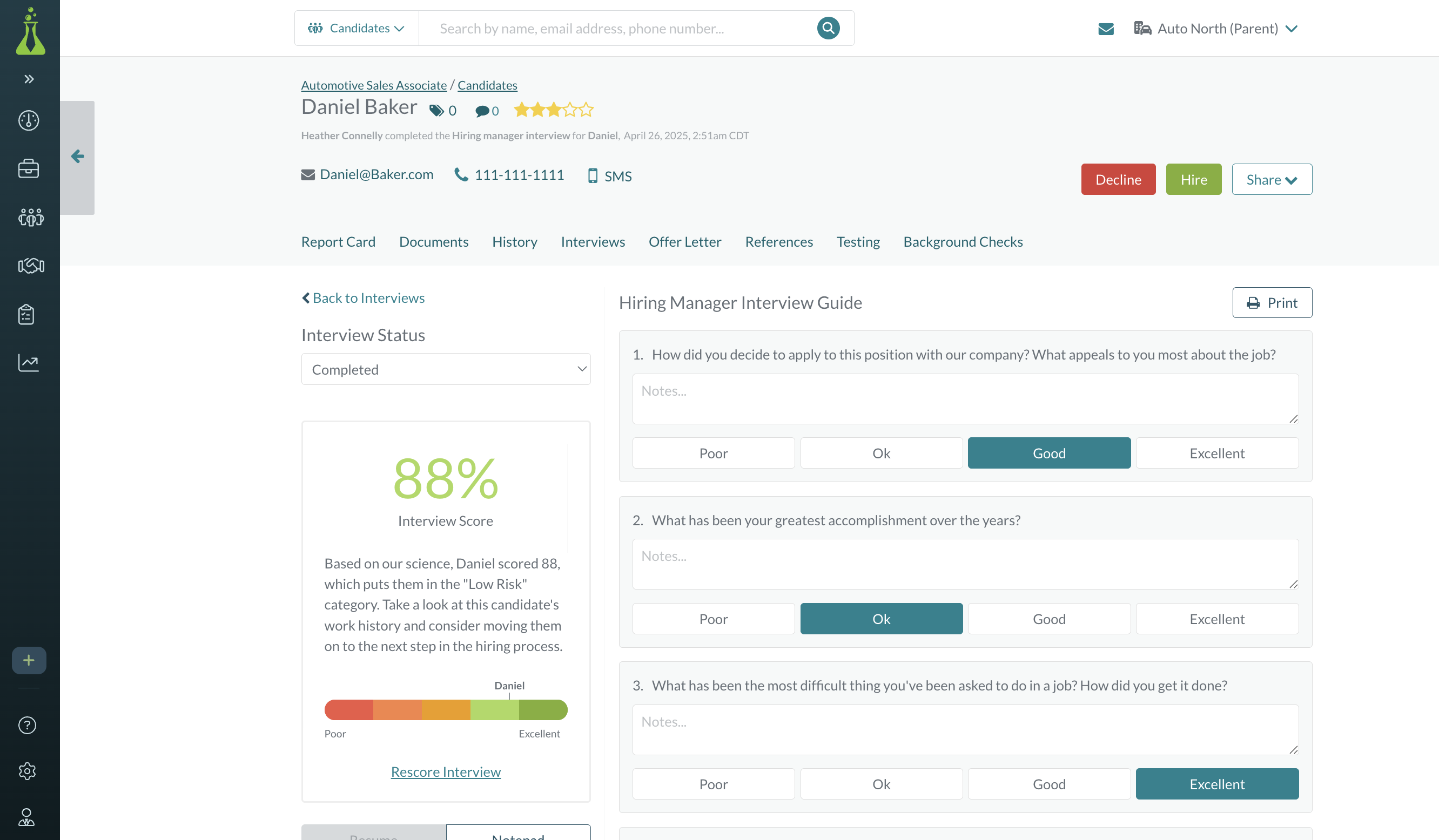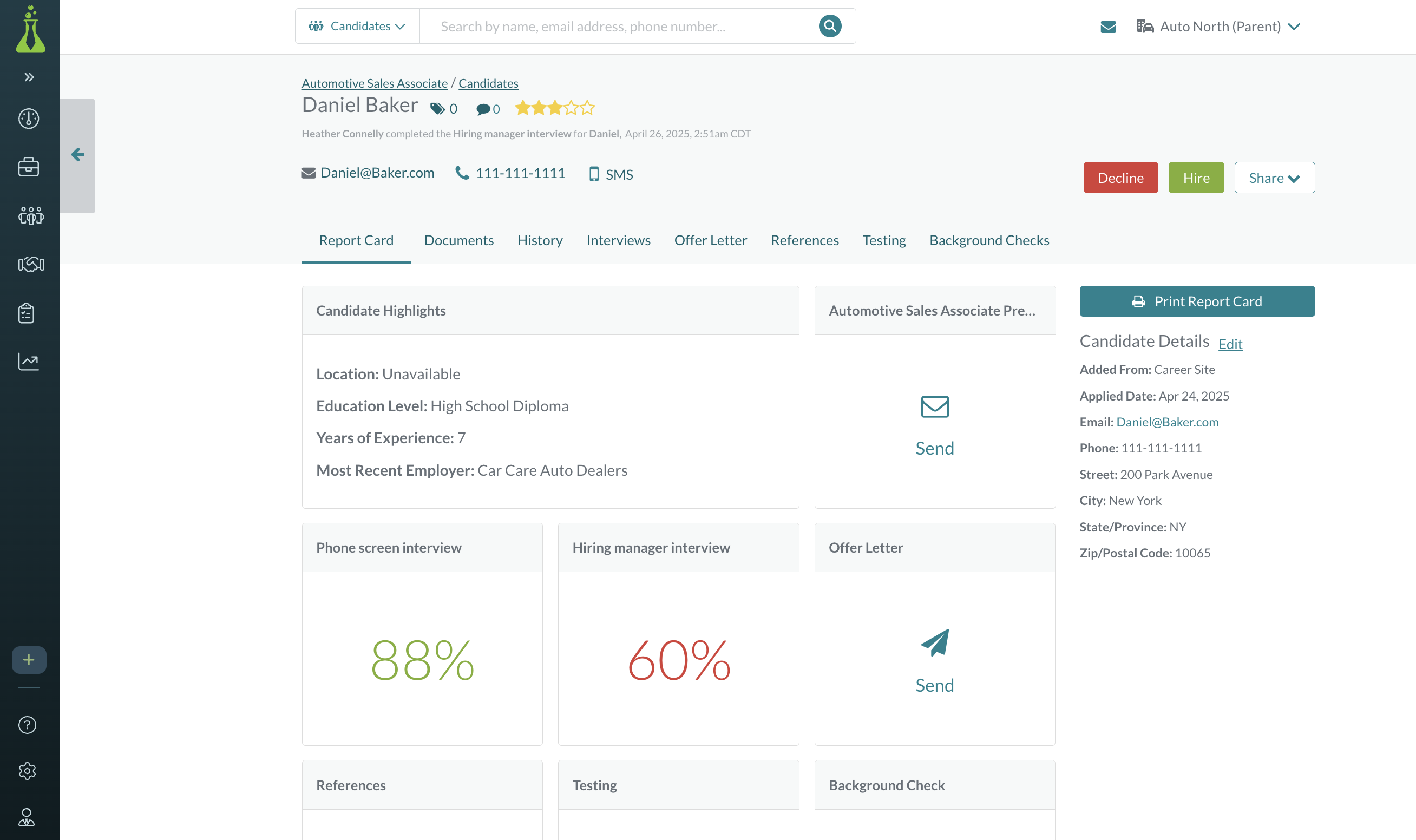 Gosto que o Hireology atualize muito rapidamente. Quando um candidato marca uma consulta, as novas informações são preenchidas imediatamente. As opções de modelos são excelentes ao enviar um texto ou e-mail, e editar os modelos uma vez é útil. Agora que estou usando o Hireology há alguns meses, é fácil de usar e economiza tempo. Análise coletada por e hospedada no G2.com.