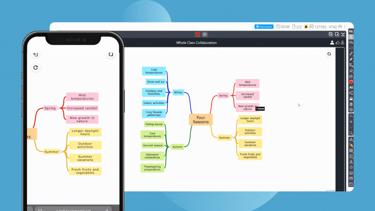 Uma das características de destaque do HiTeach são suas ferramentas de aprendizagem interativas e colaborativas. Essas ferramentas facilitam a participação em tempo real entre os alunos, permitindo que eles se envolvam em discussões, projetos em grupo e outras atividades colaborativas. Isso não apenas melhora a experiência de aprendizagem, mas também ajuda a desenvolver habilidades essenciais de trabalho em equipe. Além disso, a plataforma inclui assistência de ensino alimentada por IA, que simplifica os processos de preparação de aulas e avaliação. Os educadores podem aproveitar insights inteligentes para adaptar suas estratégias de ensino, garantindo que atendam às diversas necessidades de seus alunos.