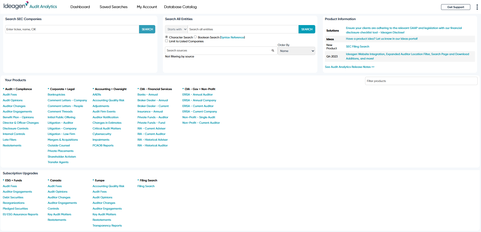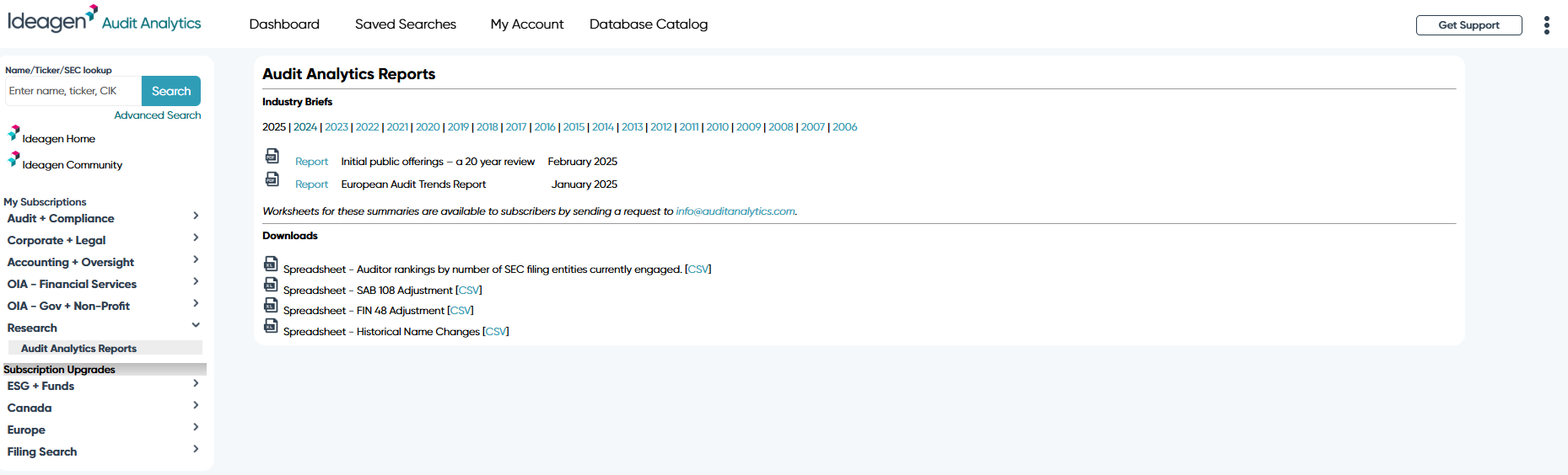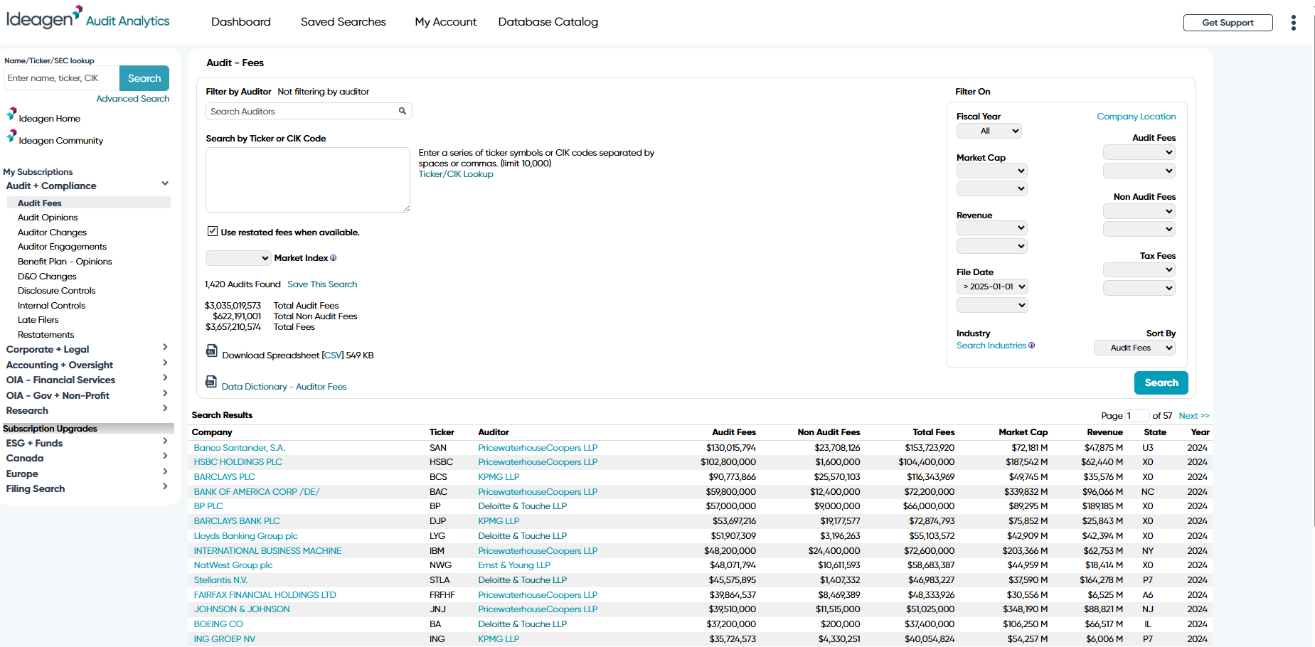 O banco de dados é excepcionalmente completo, abrangendo praticamente todos os pontos de dados relacionados ao ecossistema de auditoria e relatórios financeiros. Não é apenas amplo em escopo; seu verdadeiro poder reside na profundidade de detalhe para cada categoria de dados.