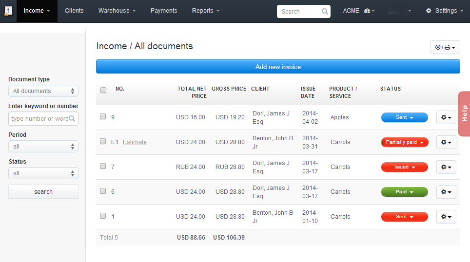 Realmente faz o que promete - fatura clientes. Sincroniza bem com nossas plataformas de pagamento para marcar automaticamente as faturas como pagas assim que os clientes pagam. Simples de usar. Análise coletada por e hospedada no G2.com.