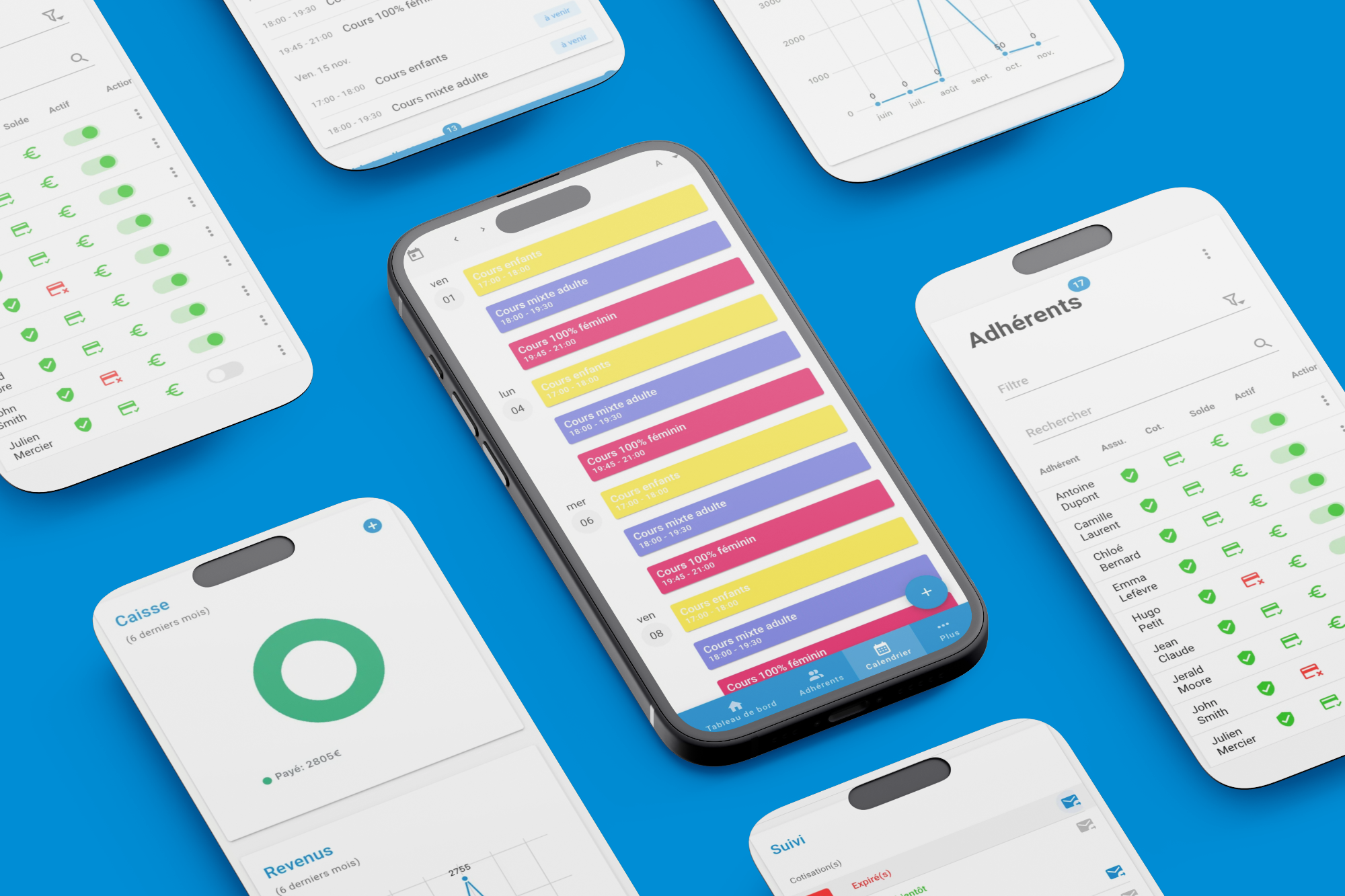 Um painel intuitivo e fácil de usar permite agendar aulas, gerenciar associações, acompanhar taxas de frequência, automatizar pagamentos e muito mais - a qualquer hora, em qualquer lugar.