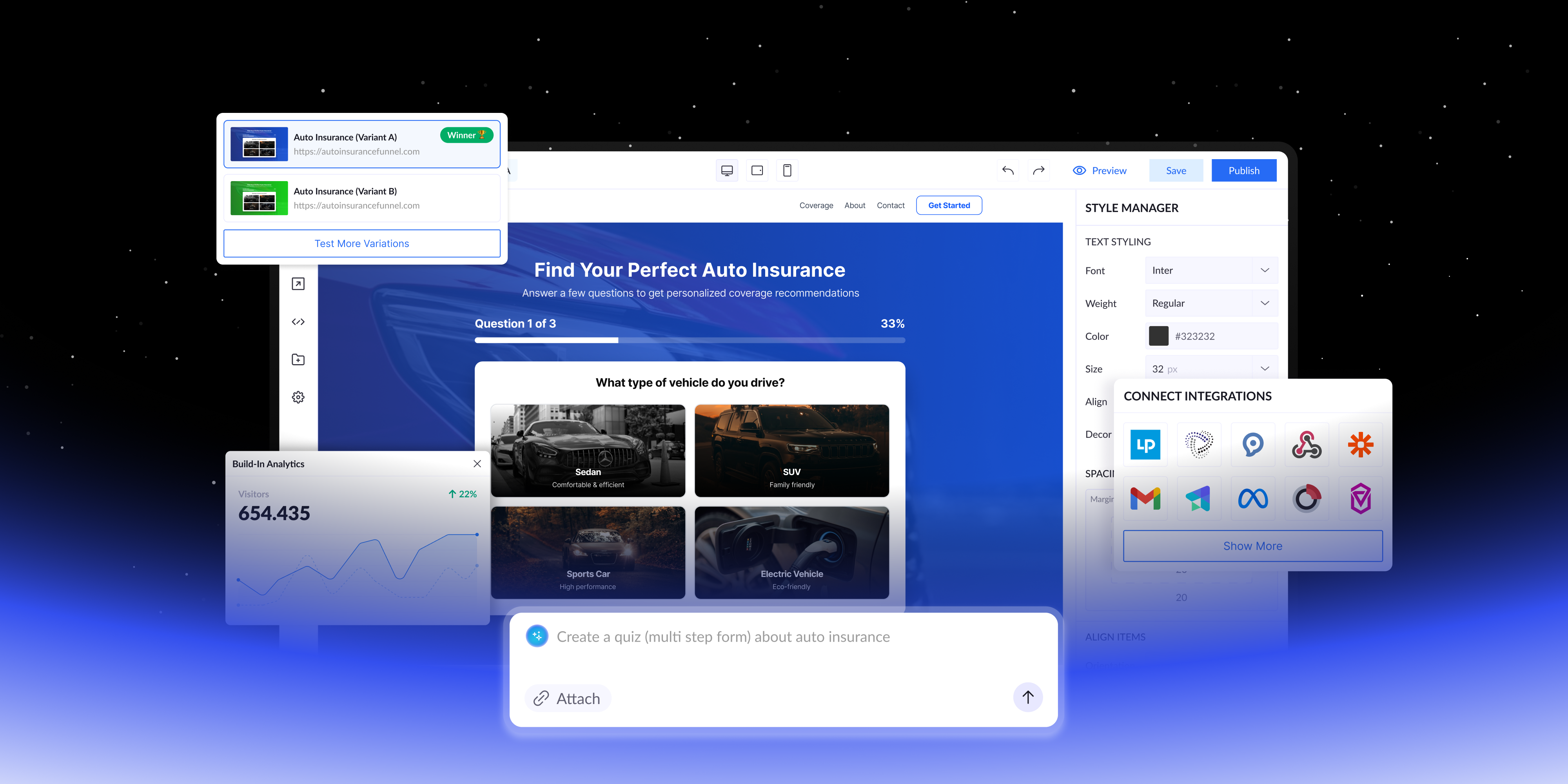 LanderLab é um tipo de construtor de páginas de destino e software de geração de leads que ajuda os usuários a criar, publicar e otimizar páginas de destino e funis para campanhas de marketing digital. A plataforma permite que os profissionais de marketing e empresas projetem páginas de destino, coletem leads de visitantes e distribuam esses leads para sistemas de marketing, rastreamento ou CRM sem exigir codificação ou configuração técnica complexa.