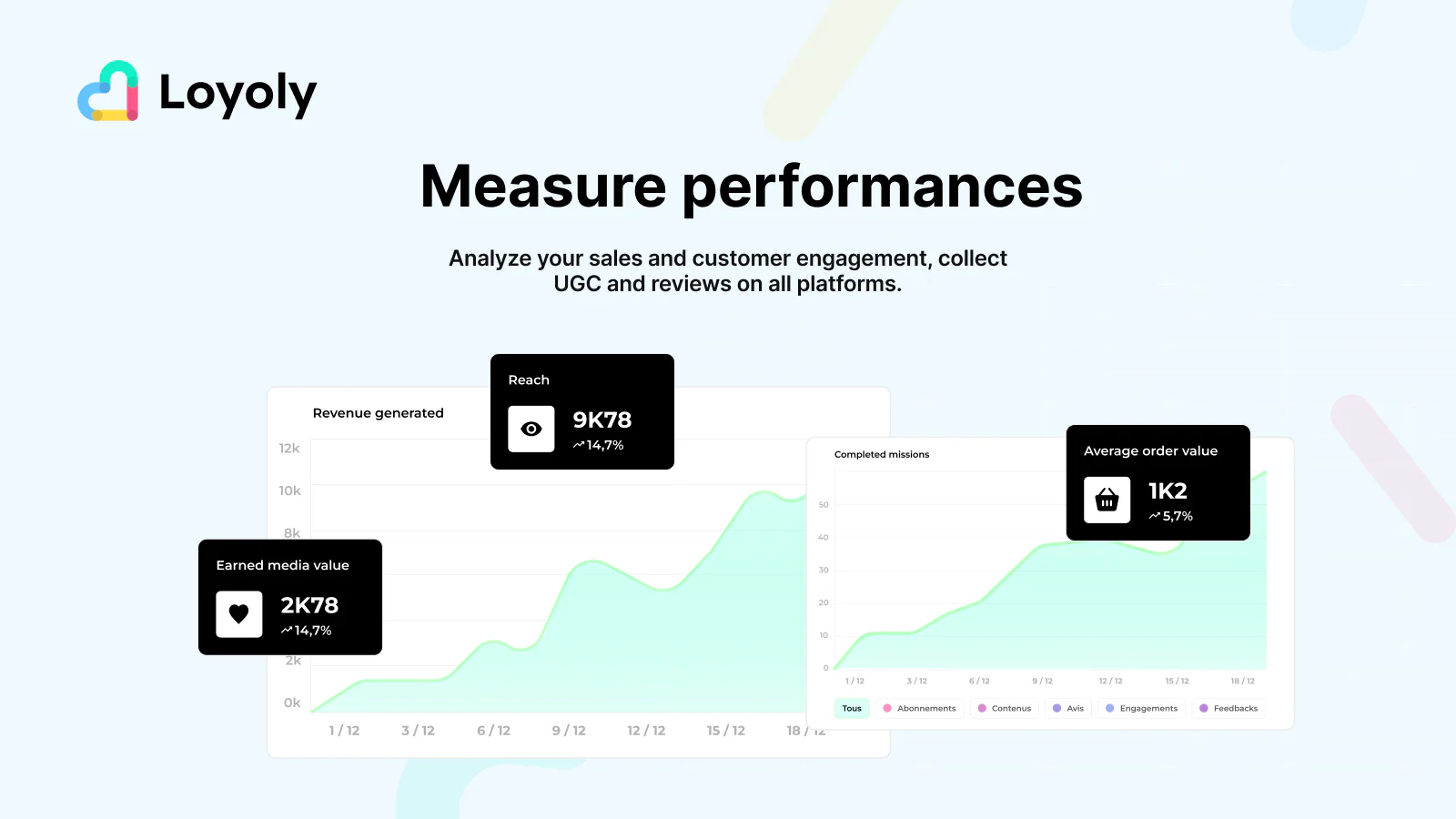 Mais do que apenas uma plataforma de fidelidade, a Loyoly capacita as marcas a ativar sua comunidade, amplificar a prova social e transformar clientes satisfeitos em poderosos impulsionadores de crescimento. As equipes ganham visibilidade total sobre o engajamento do cliente, insights acionáveis para otimizar o desempenho e a flexibilidade para lançar novas estratégias de ativação rapidamente.