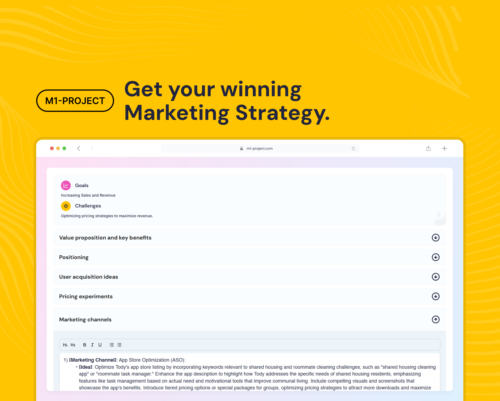 Realmente fácil de usar e implementar. Fez tudo por si só, apenas fornecendo o link do meu site. E agora tenho material pronto para integrar na minha estratégia de negócios, alinhado e pronto para ser implementado.