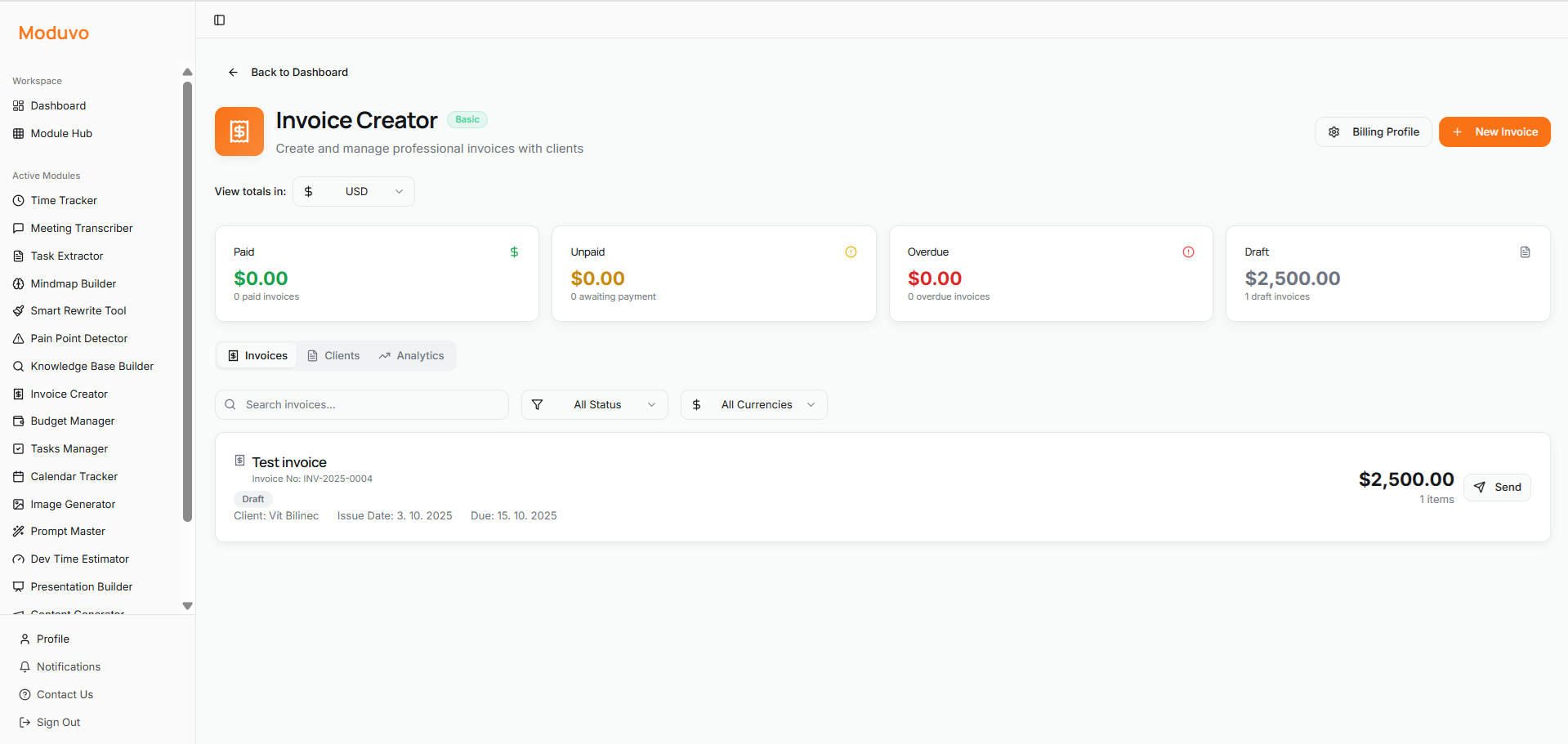 Em resumo, o Moduvo pode ajudá-lo a automatizar tarefas repetitivas, simplificar a colaboração e gerenciar operações diárias de negócios com módulos impulsionados por IA—tudo em uma plataforma personalizável.