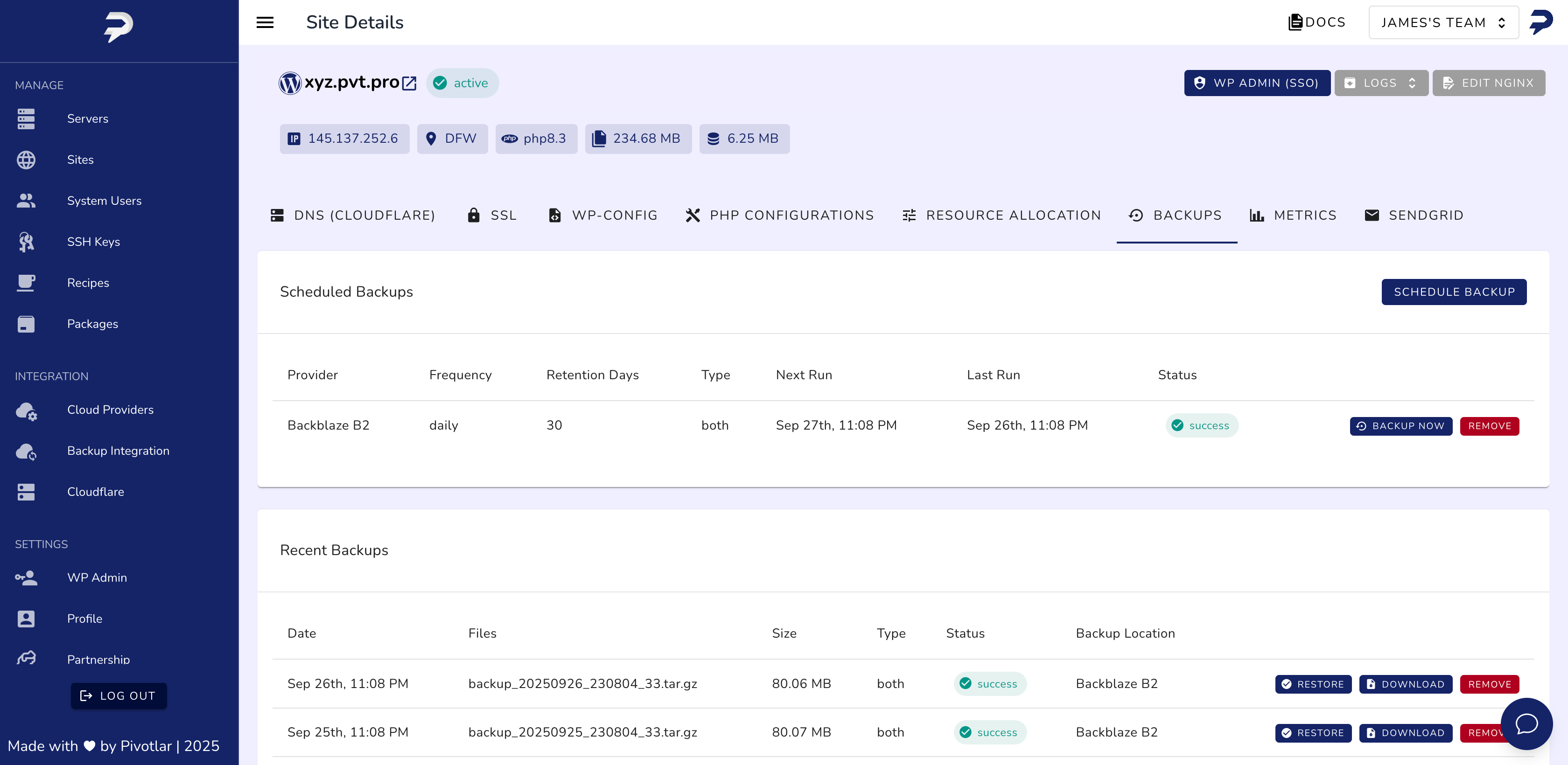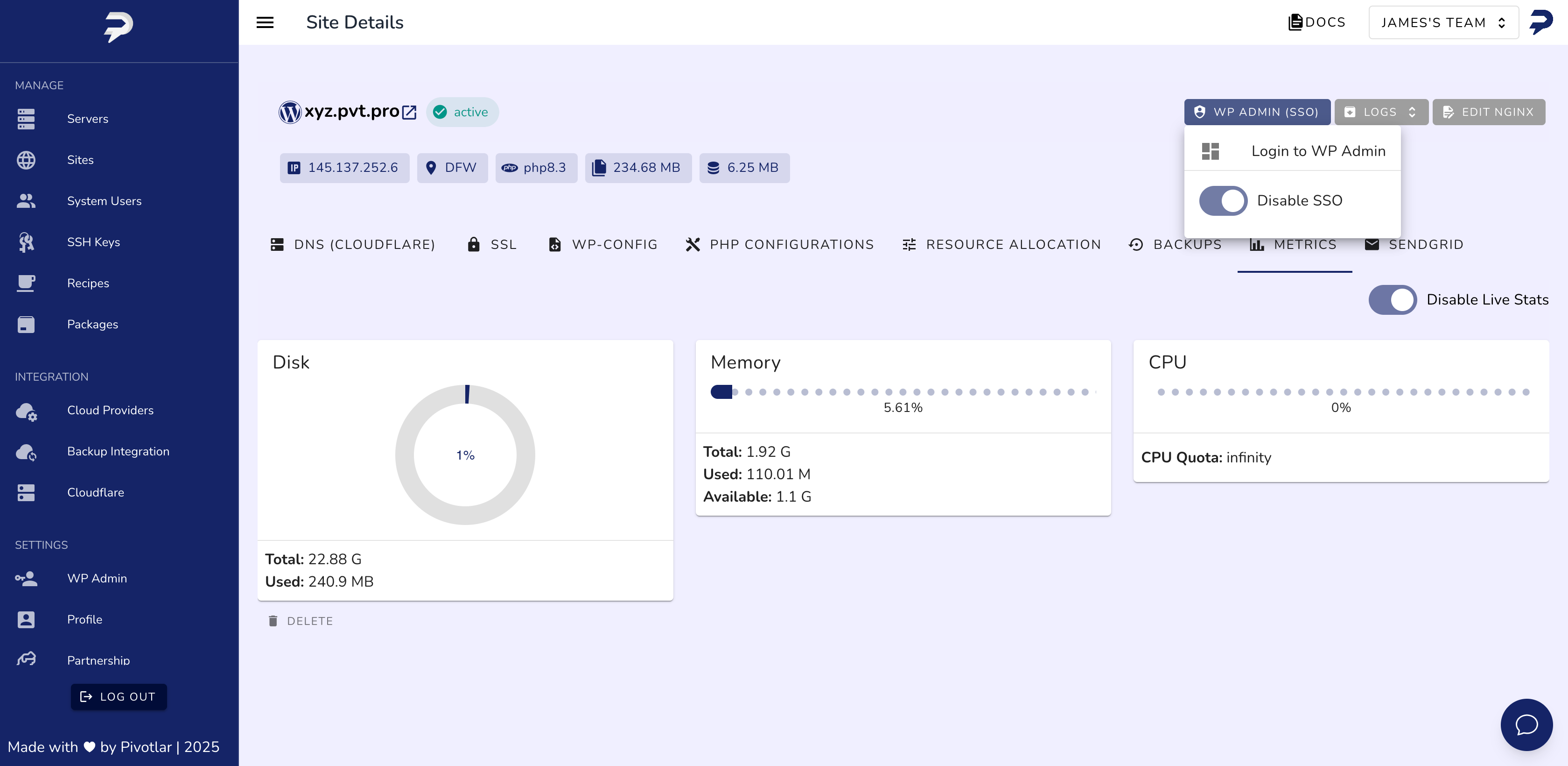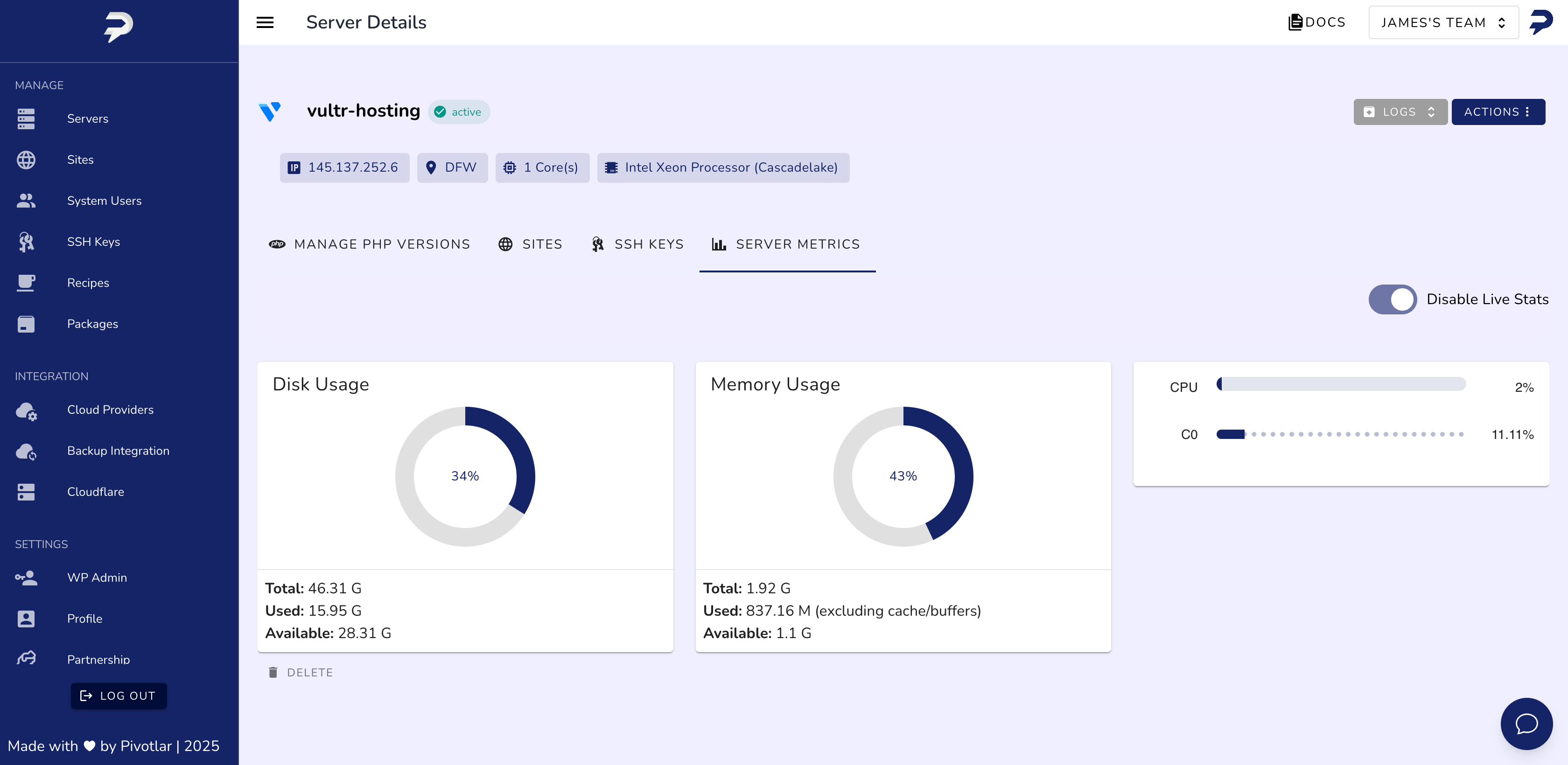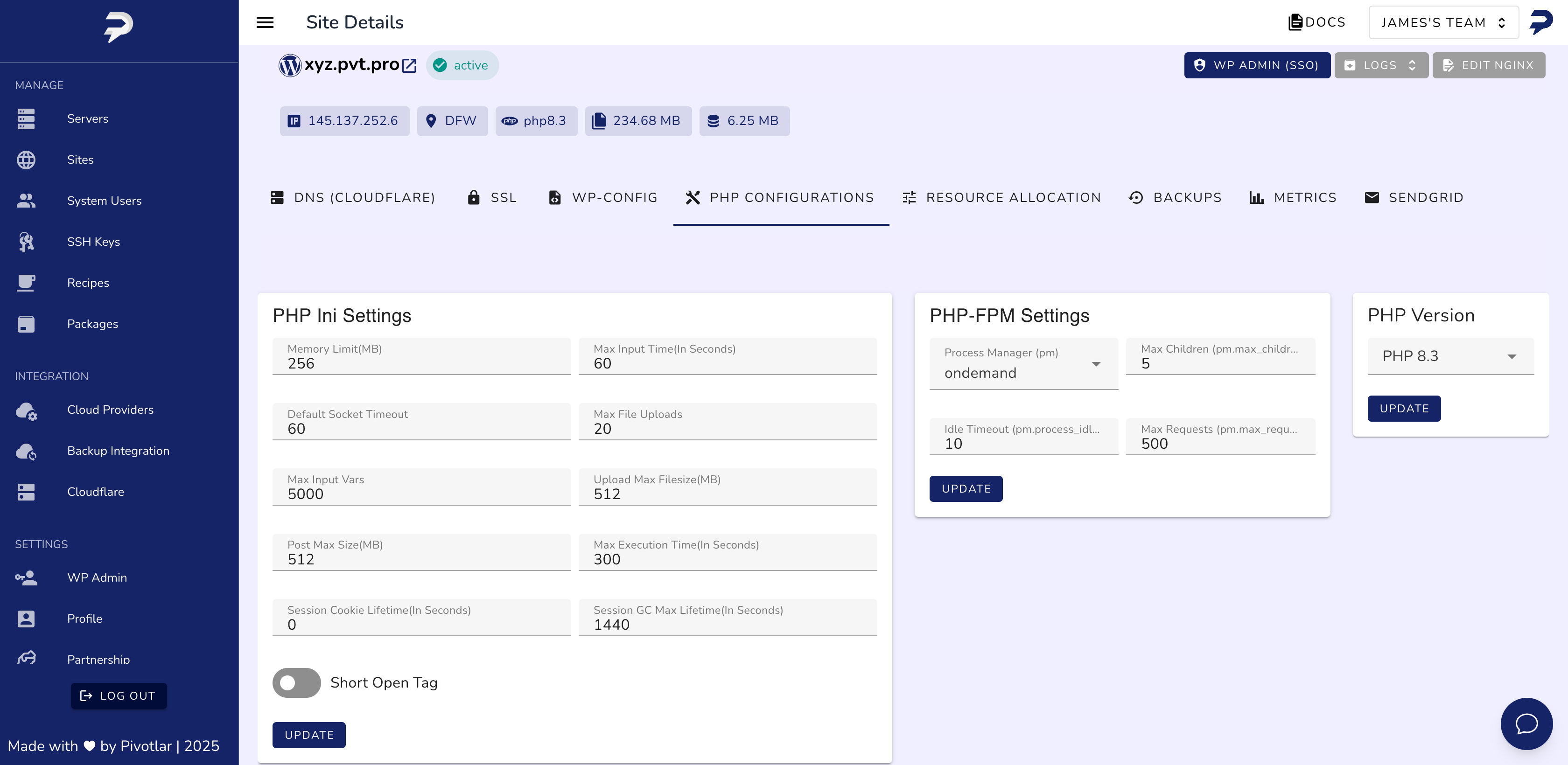 Pivotlar simplifica a hospedagem WordPress permitindo que você implante, gerencie e otimize sites ilimitados no DigitalOcean, Hetzner, Vultr e Amazon Lightsail, tudo a partir de um único painel intuitivo. Projetado para desenvolvedores, freelancers e agências, o Pivotlar automatiza a configuração de servidores, otimização de desempenho e gerenciamento de hospedagem para que você possa se concentrar no crescimento e na entrega aos clientes.