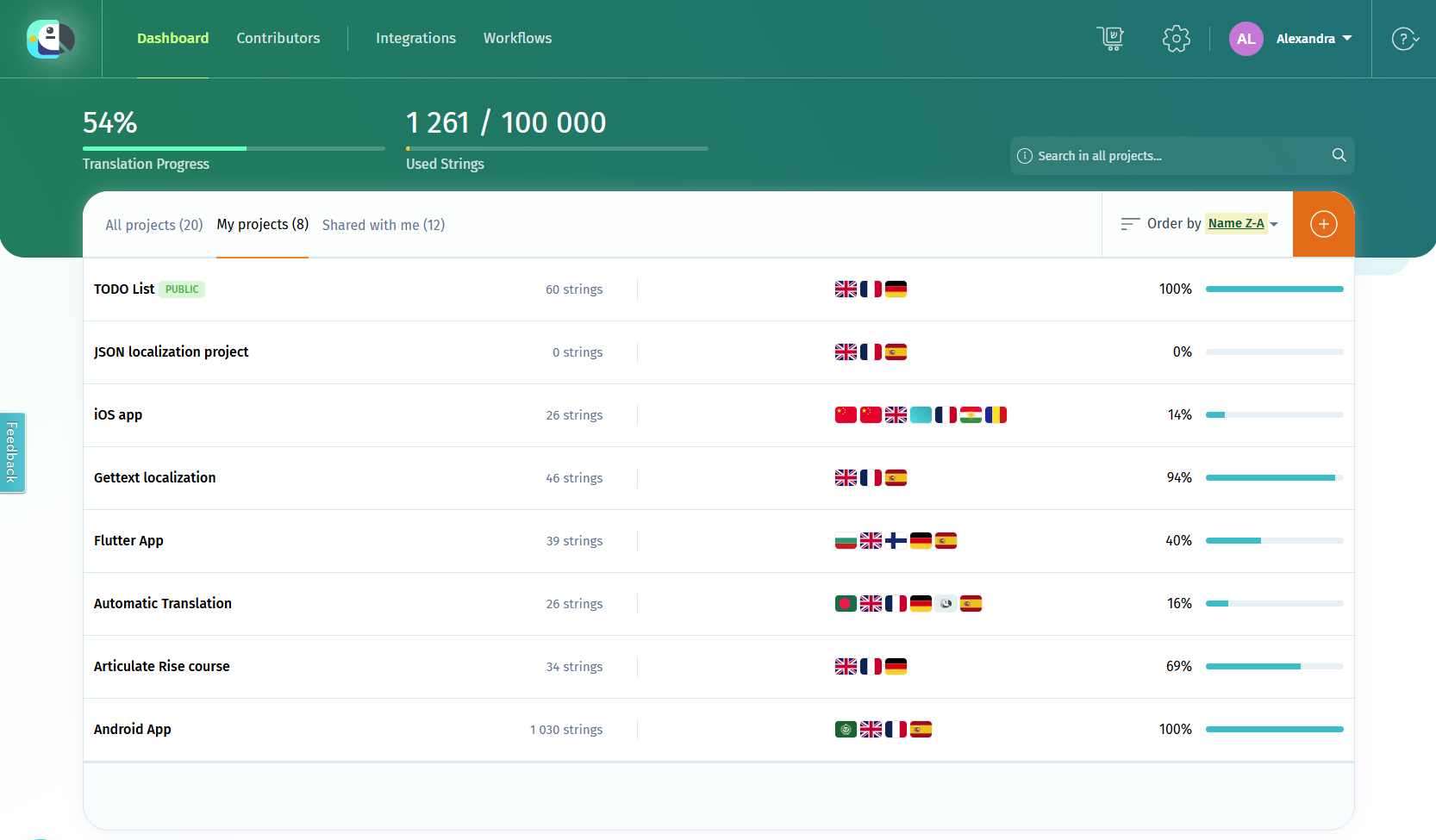 As ferramentas de relatórios e análises são realmente úteis. Como administrador, posso ver quantas palavras foram traduzidas, as taxas de conclusão e quão ativos os tradutores estão. Esses insights me ajudam a manter nossos projetos no caminho certo e garantir que cumpramos nossos prazos.
