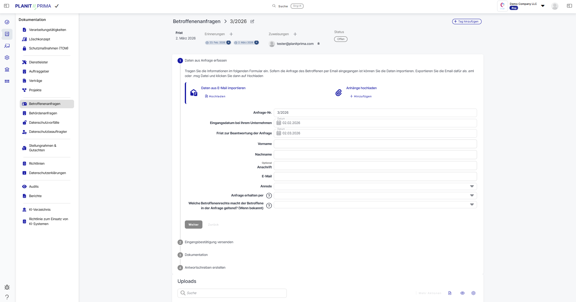 - Gestão de Incidentes: Identifique e gerencie incidentes de privacidade, capture dados para entender o impacto e as causas raízes, e receba orientações automatizadas sobre requisitos de notificação.