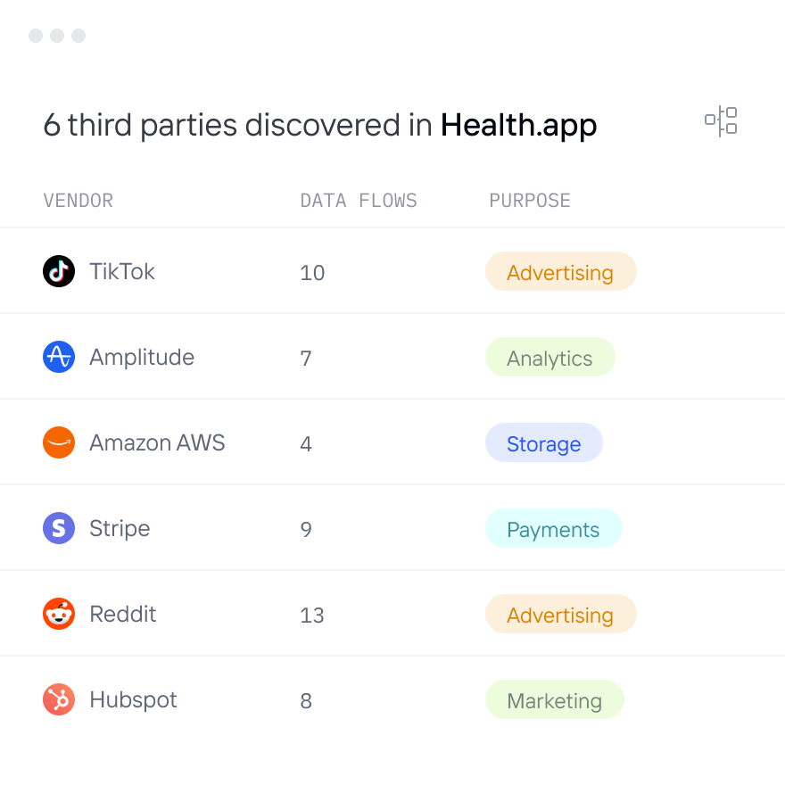 - Scanner Abrangente de Atividade de Cookies e Tags: Fornece uma visão global de todos os fornecedores ativos em seu site, incluindo tags, pixels, beacons e cookies, para identificar rapidamente o compartilhamento não autorizado de dados.