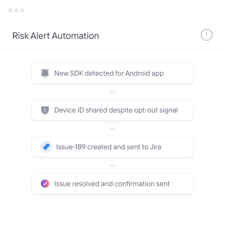 - Monitoramento de Compartilhamento de Dados de Anúncios Digitais: Monitora continuamente todos os parceiros de anúncios para proteger contra o compartilhamento não autorizado de dados, especialmente após as recusas dos consumidores, e protege contra estruturas de sinal de anúncios IAB quebradas.