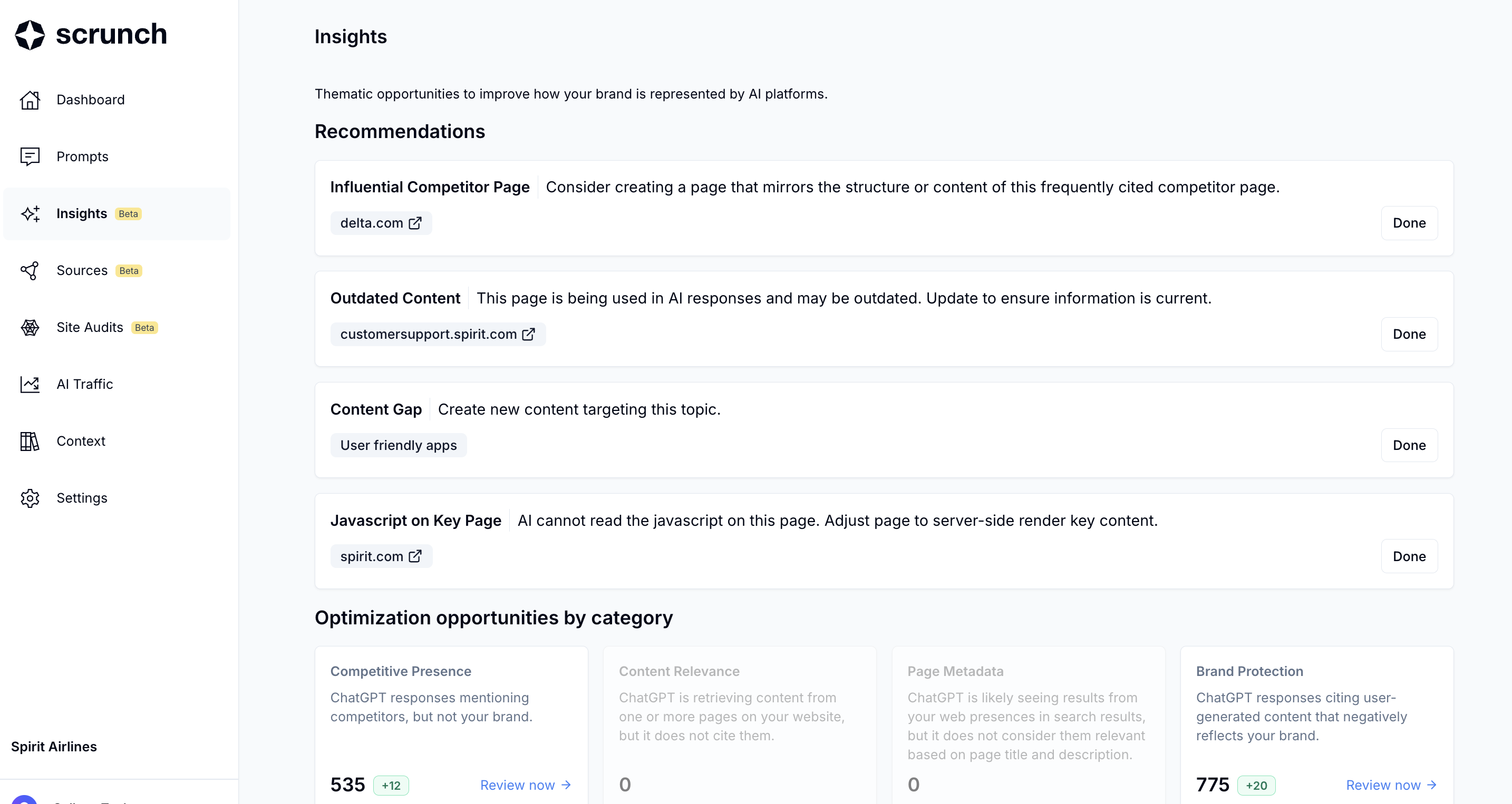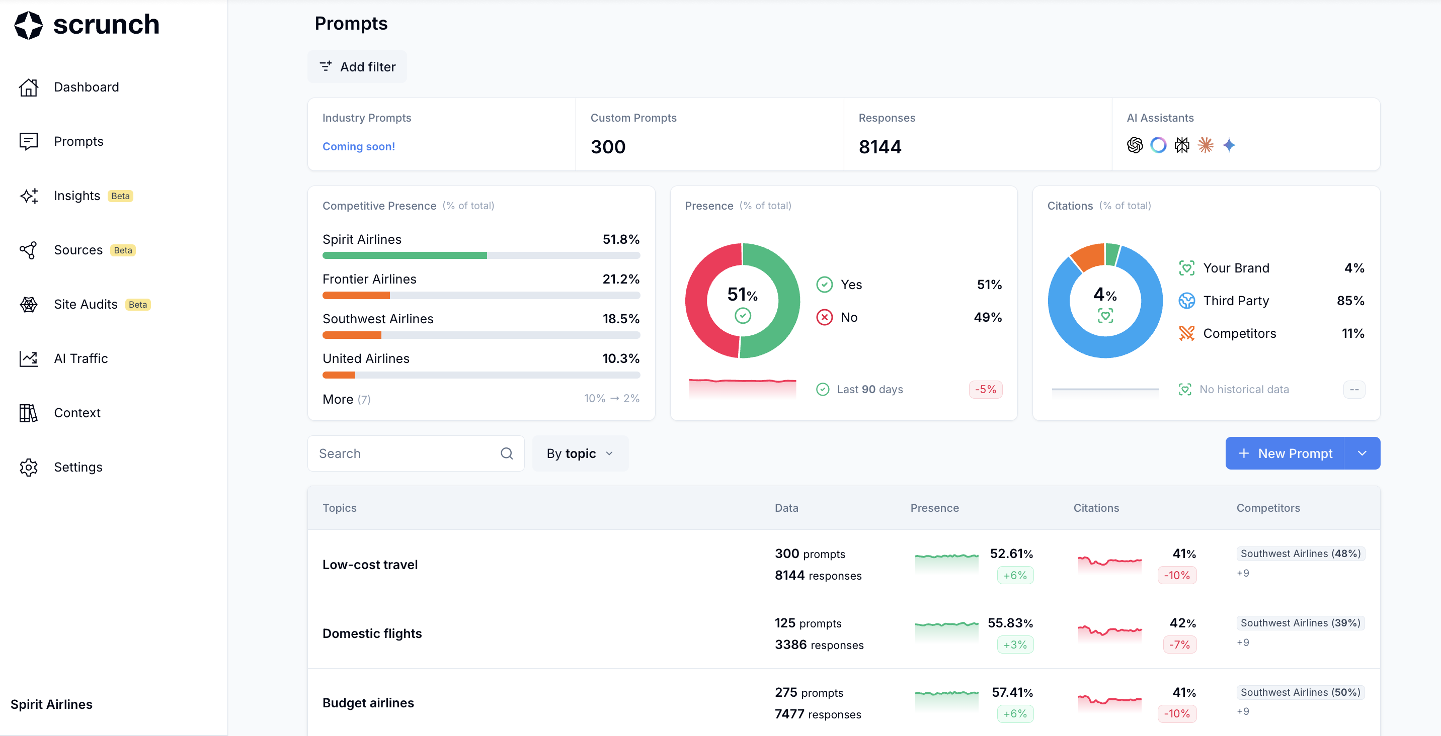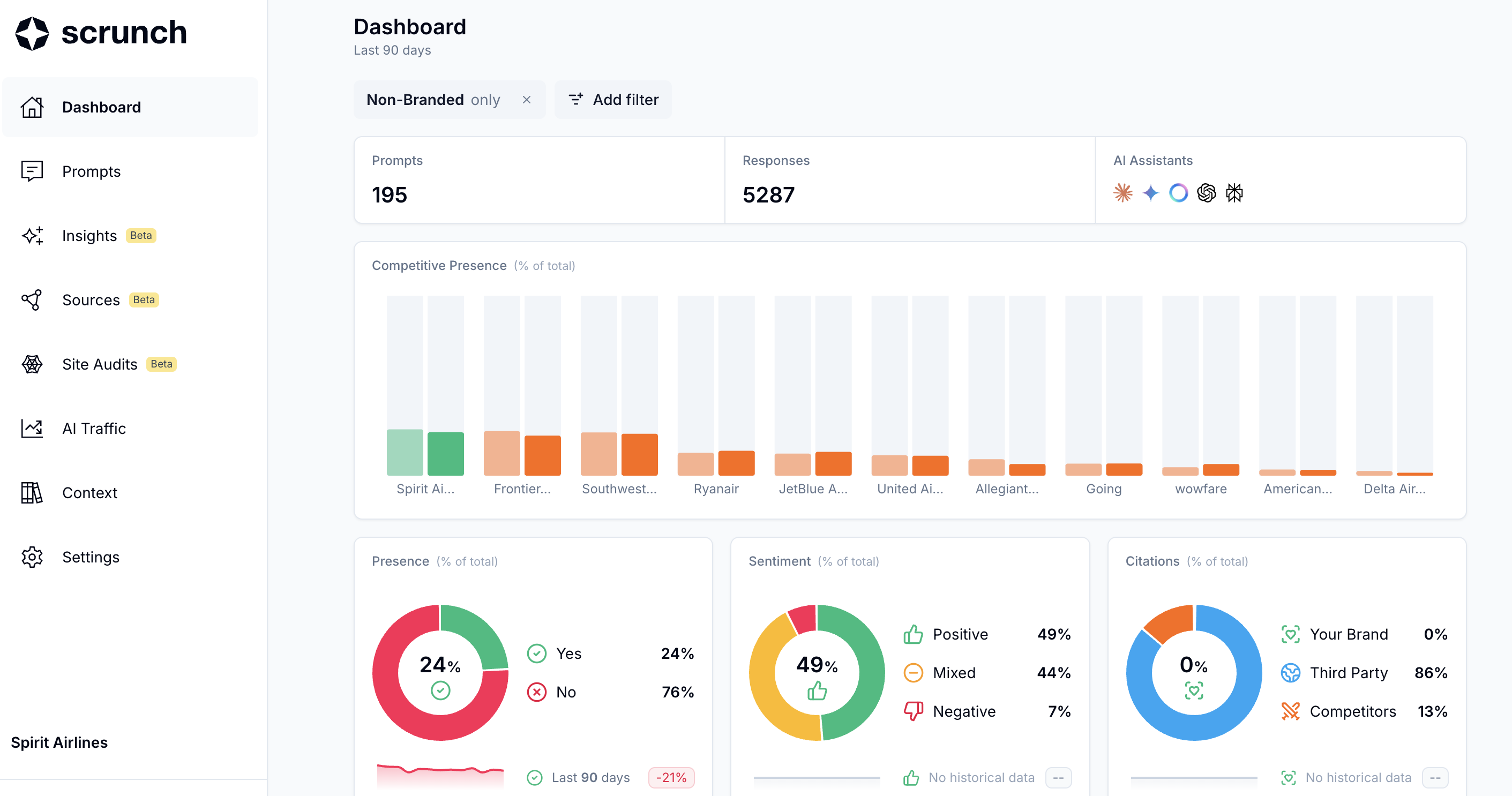 Escolhi o Scrunch para minha pequena agência de marketing digital, então o uso diariamente para rastrear a visibilidade de IA em vários clientes. Meu representante de conta foi ótimo para trabalhar e me ajudou a configurar rapidamente uma instância para um prospecto que eu estava prestes a apresentar. Assinei um pacote inicial para agências depois disso, já que gostei da experiência e da própria ferramenta, que parece profissional o suficiente para apresentar a uma empresa.