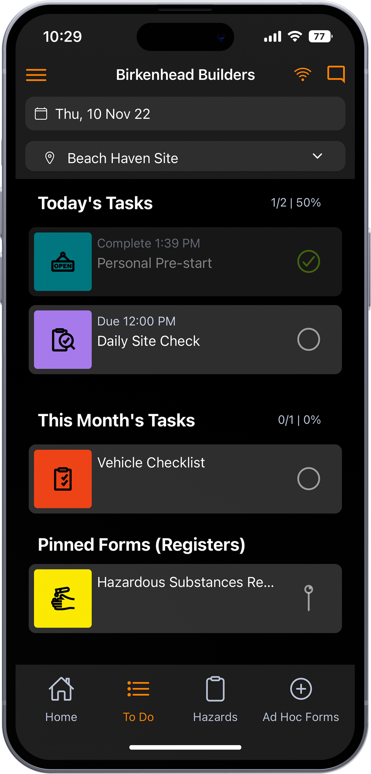 - Formulários Digitais com Sistema de Fluxo de Trabalho de Responsabilidade™: Permite a criação e gestão de formulários digitais com campos de preenchimento obrigatório e lembretes automáticos para renovação de documentos ou recertificação de treinamentos.