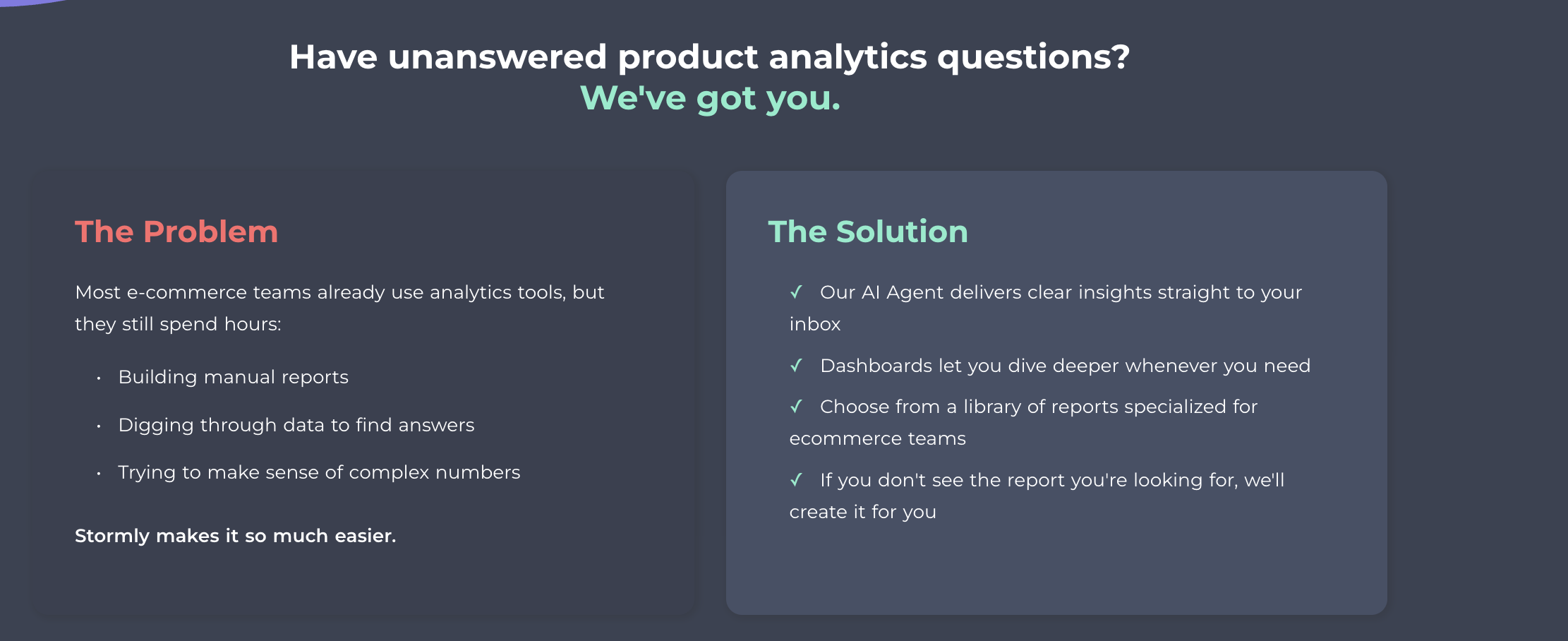 O que mais aprecio no Stormly é sua capacidade de destilar dados complexos em insights acionáveis. Nossa equipe de análise de produtos está agora integrando o Stormly, e já está provando seu valor ao fornecer insights de dados cruciais e ajudar a moldar nosso roteiro estratégico.