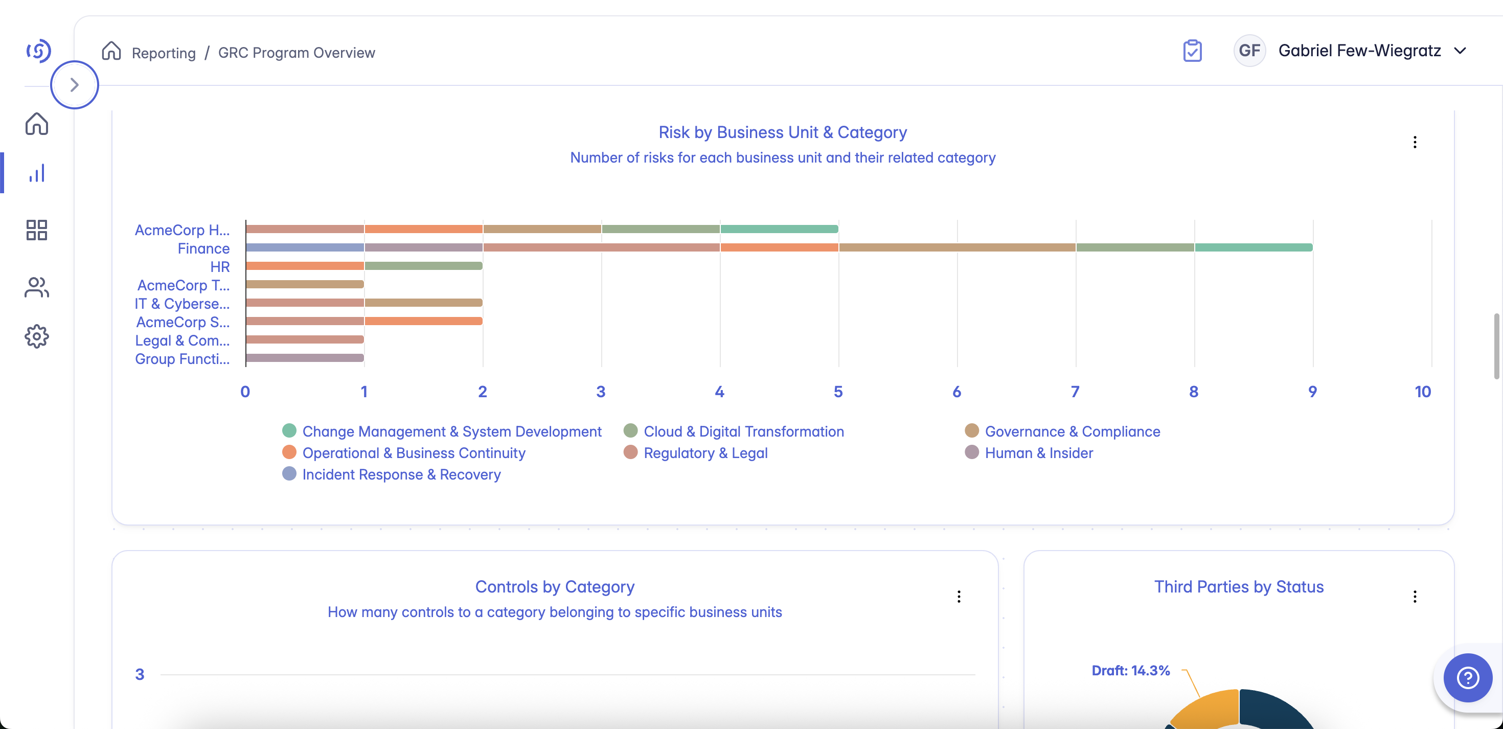 Revisamos vários sistemas de Gestão de Riscos e descobrimos que o Surecloud é o mais adequado para o nosso negócio. O processo de implementação foi muito tranquilo, e isso foi realmente facilitado pelo fato de que eles designam um Gerente de Produto para você desde o início. O Gerente de Produto está envolvido desde o primeiro dia da demonstração original, o que significa que, quando você decide implementar o sistema deles, eles já têm uma boa ideia dos seus requisitos de sistema, o que levou a um processo de implementação suave. A equipe foi ótima, foram muito pacientes, lidaram com nossas intermináveis dúvidas e forneceram treinamento consistente antes do lançamento, garantindo que a facilidade de uso configurada para nossos requisitos exatos quando entramos em operação fosse sempre o resultado. Eu recomendaria altamente este sistema. Uma das melhores características é o painel, que pode ser adaptado aos requisitos individuais e é muito simples de configurar. Os relatórios e gráficos do painel podem ser facilmente exportados e inseridos em qualquer documento que você precise. Análise coletada por e hospedada no G2.com.