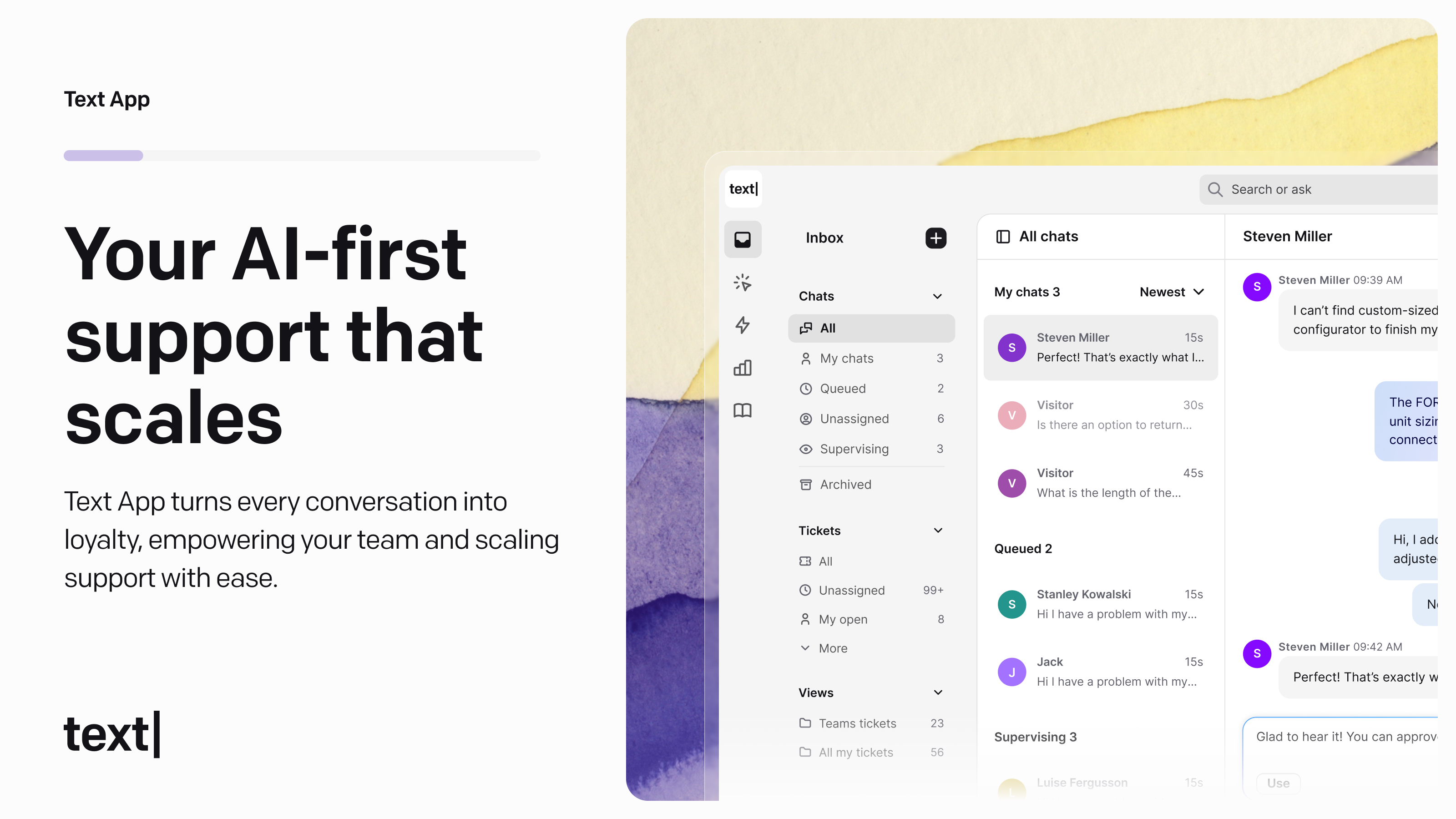 Inicie seu teste gratuito de 14 dias hoje e veja como o Text App transforma o suporte em ROI mensurável.
