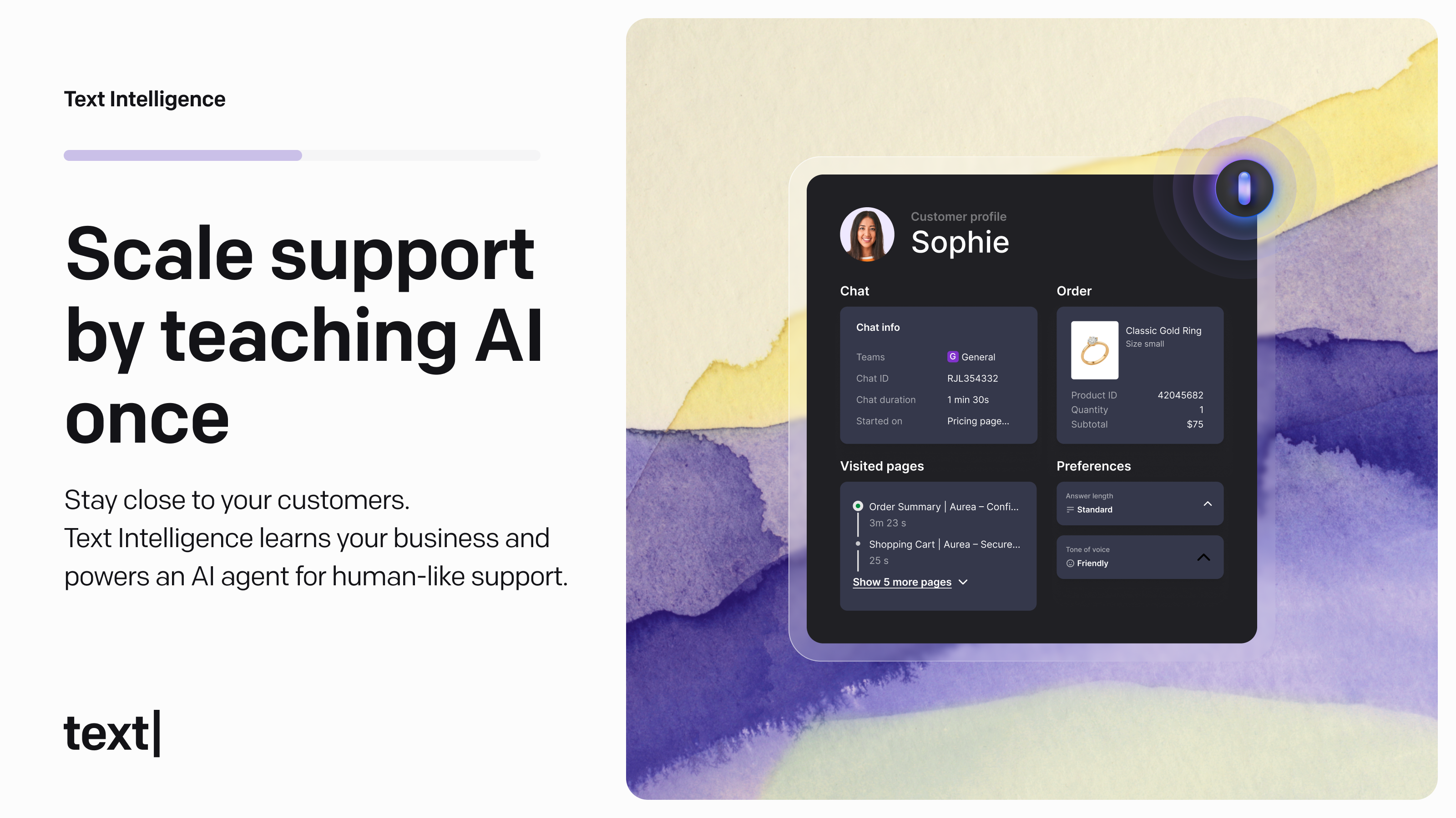No seu núcleo, o Text Intelligence automatiza até 80% das consultas rotineiras com ticketing inteligente, sugestões de resposta em tempo real e fluxos de trabalho simplificados. Automação e expertise humana trabalham juntas em uma plataforma, ajudando empresas a escalar o suporte sem aumentar os custos.