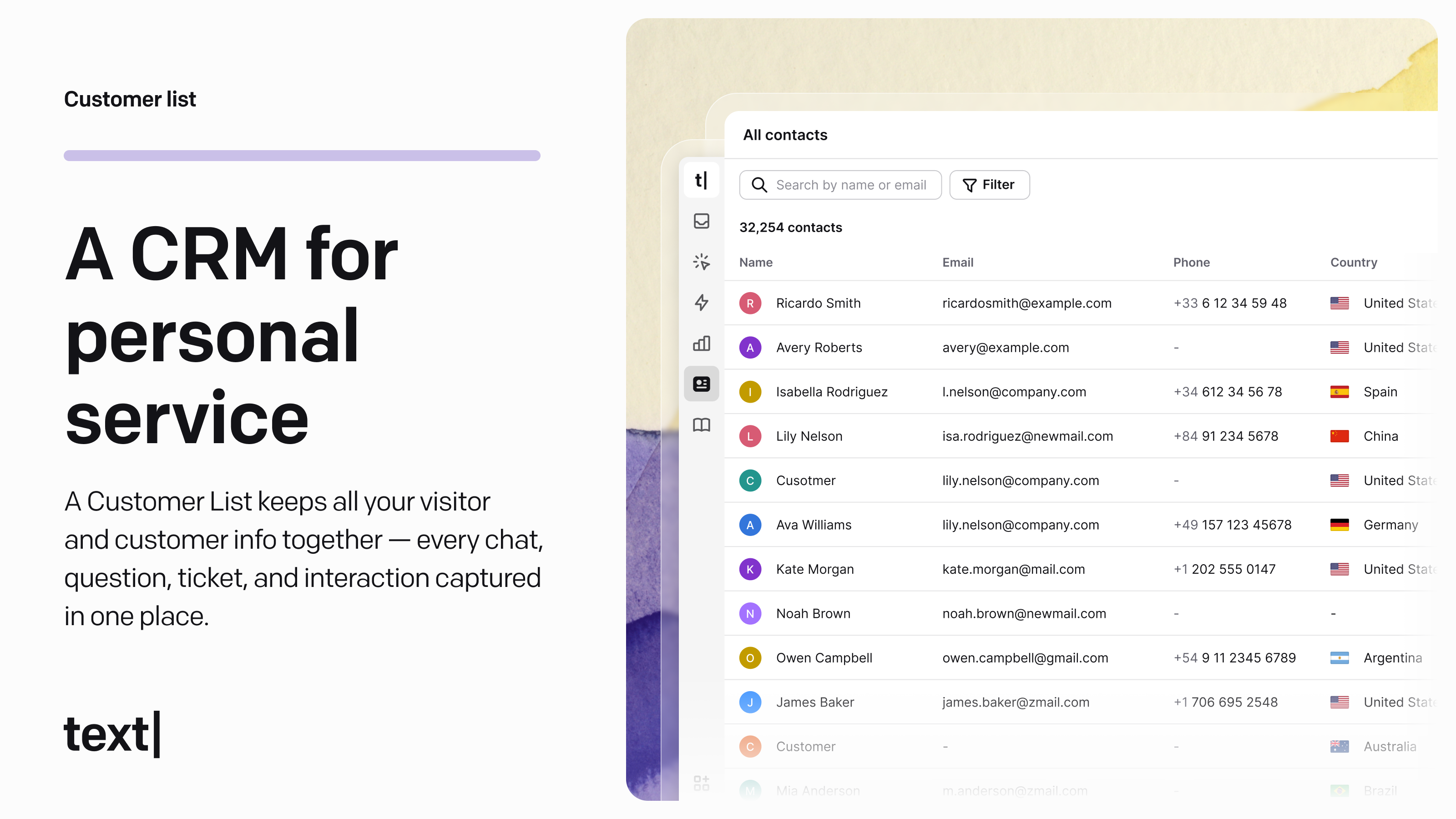 O Text App foi criado pela equipe por trás do LiveChat, HelpDesk e ChatBot. Com mais de 20 anos de experiência na indústria, eles criaram uma plataforma de atendimento ao cliente com foco em IA que ajuda as equipes de suporte a oferecer experiências ao cliente mais rápidas, inteligentes e consistentes.