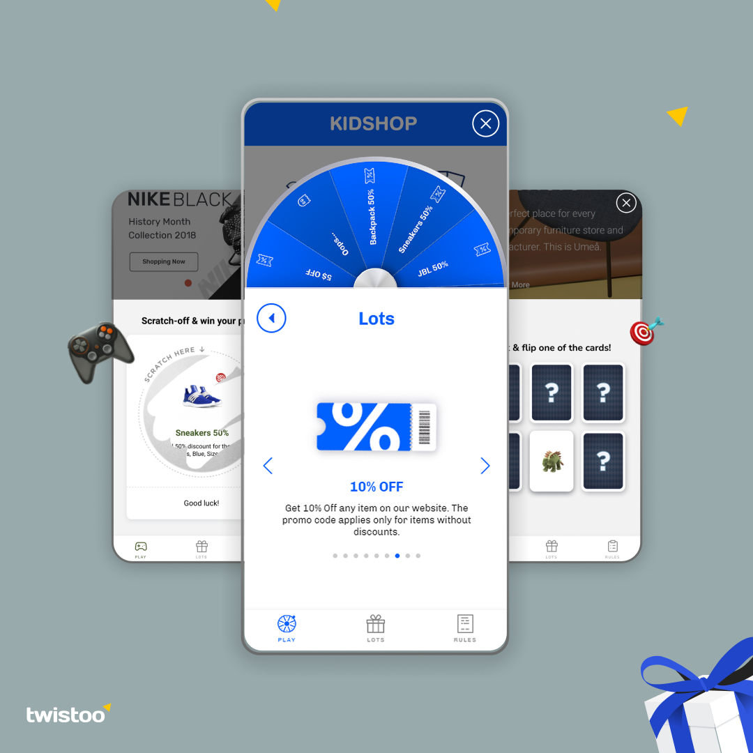 Capture emails, and giveaway promo codes with crazy conversions with Wheel of Fortune, Card Flip, Scratch Card, Calendar, and Quiz games. Send emails with game results, get email newsletter subscribers & sales with promo codes.