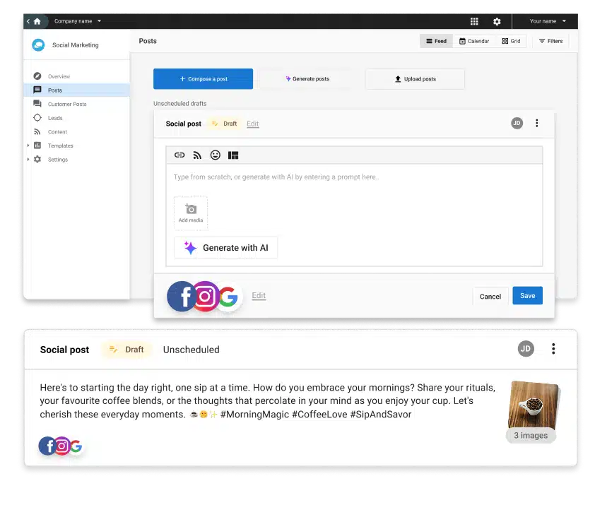 Soluções de marketing impulsionadas por IA para empresas com várias localizações.