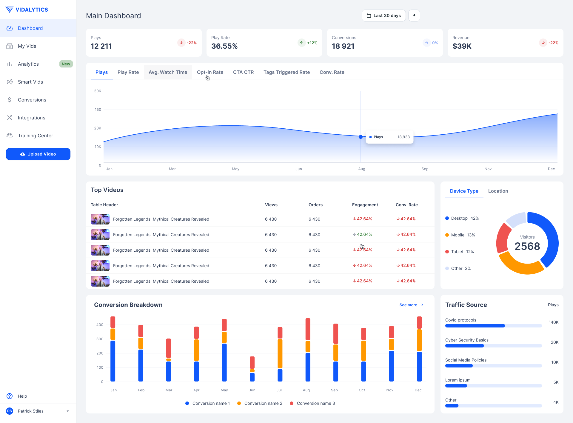 Vidaltics aumentou minha conversão de vendas em 10 a 15 vezes, é indispensável para qualquer profissional de marketing sério. Para VSL e reprises de webinars, aumenta o número de visualizações que você obtém. E as análises são incríveis. Análise coletada por e hospedada no G2.com.