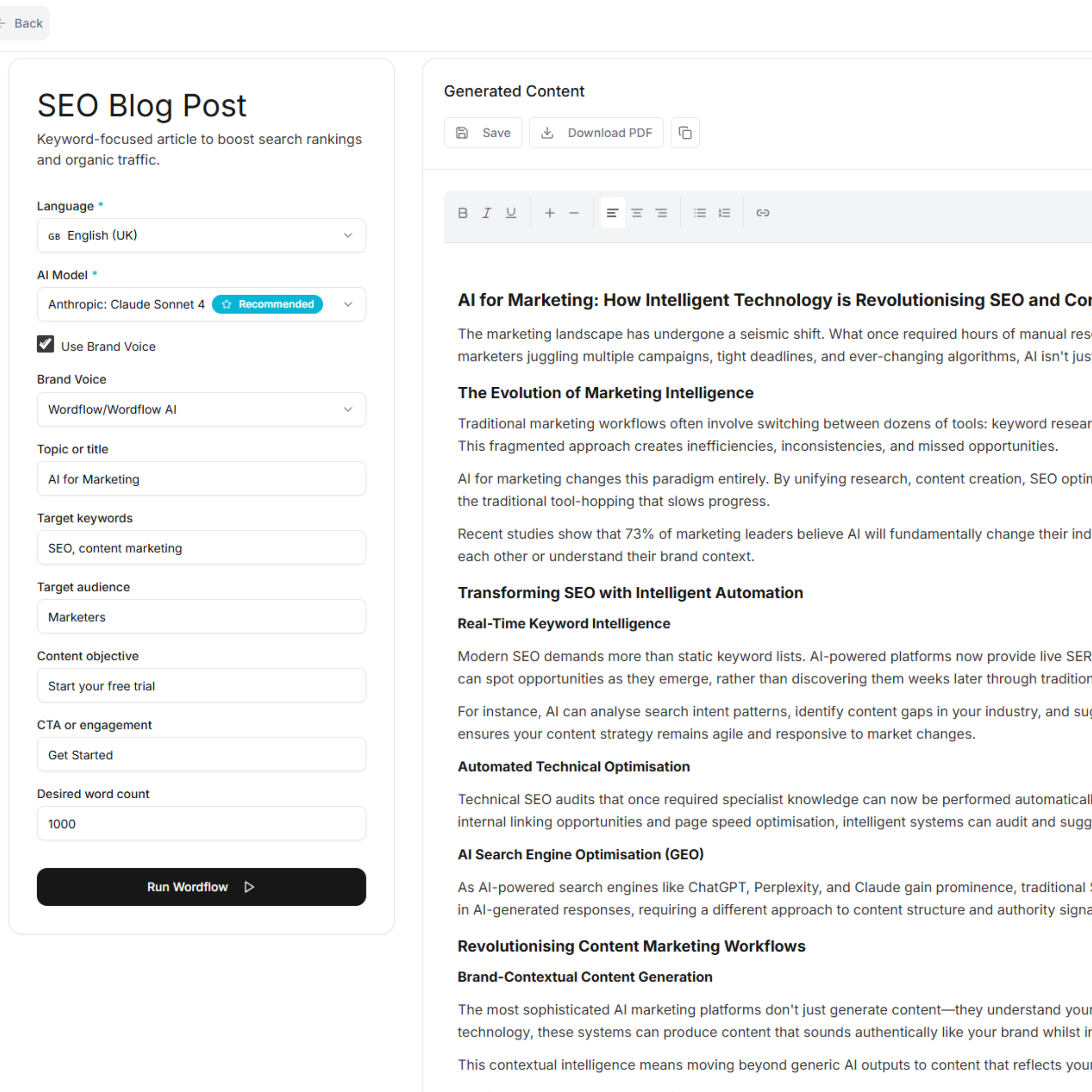 Como alguém que dirige uma agência de conteúdo, o Wordflow eliminou muito trabalho desnecessário. Posso gerenciar várias marcas e clientes, e criar facilmente blogs, anúncios e campanhas em um só lugar. Também gosto que ele esteja integrado aos mais recentes modelos de IA de última geração, para que possamos escolher o modelo de IA certo para cada tarefa sem custo extra. É especialmente forte para conteúdo técnico e financeiro, e o preço por token é justo e previsível. Análise coletada por e hospedada no G2.com.